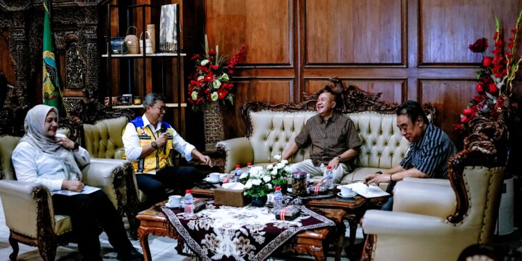 BANYUMAS – Bupati Banyumas Sadewo Tri Lastiono didampingi Kepala Dinas Pekerjaan Umum (DPU) Kabupaten Banyumas Kresnawan melakukan audiensi bersama Direktur Jenderal Pembiayaan Infrastruktur Kementerian Pekerjaan Umum dan Perumahan Rakyat (PUPR) Rachman Arief beserta sejumlah tamu undangan lainnya. Pertemuan tersebut berlangsung di Ruang Joko Kahiman Purwokerto pada Kamis (23/10/2025), dalam rangka membahas perkembangan Proyek Jalan Tol Pejagan–Cilacap yang menjadi salah satu proyek strategis nasional di wilayah Jawa Tengah bagian barat.