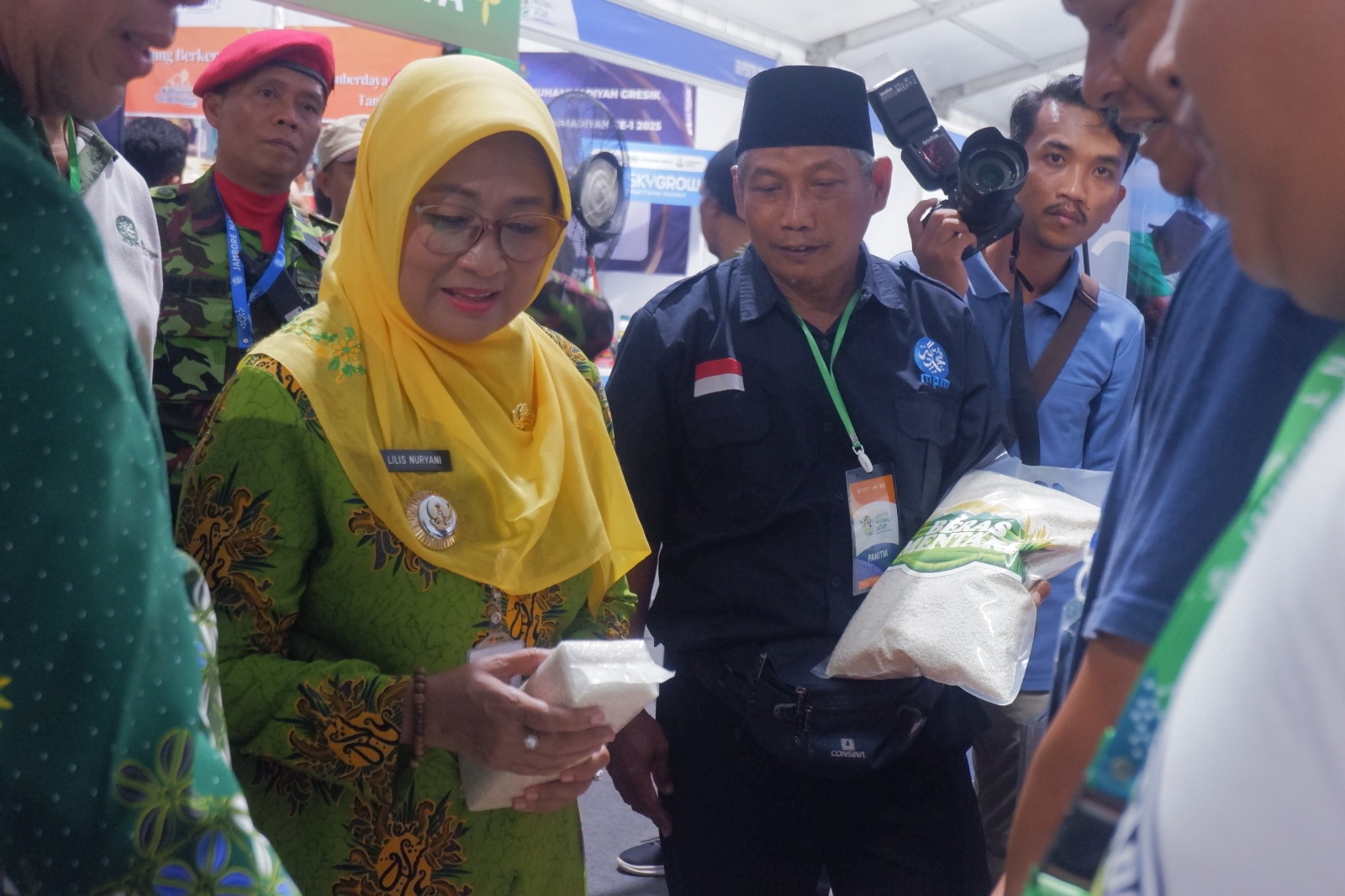 BUPATI KEBUMEN: Bupati Kebumen, Lilis Nuryani mengunjungi Stan MPM PWM Jawa Tengah yang menjual berbagai beras premium berprotein tinggi
