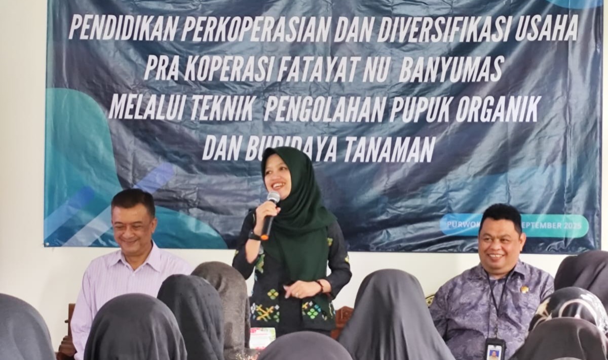 BANYUMAS – Pimpinan Cabang (PC) Fatayat Nahdlatul Ulama (NU) Banyumas menggelar Pendidikan Perkoperasian dan Diversifikasi Usaha Pra Koperasi melalui pelatihan pengolahan pupuk organik serta budidaya tanaman, Jumat (26/9/2025), di gedung serbaguna PC Fatayat NU Banyumas.