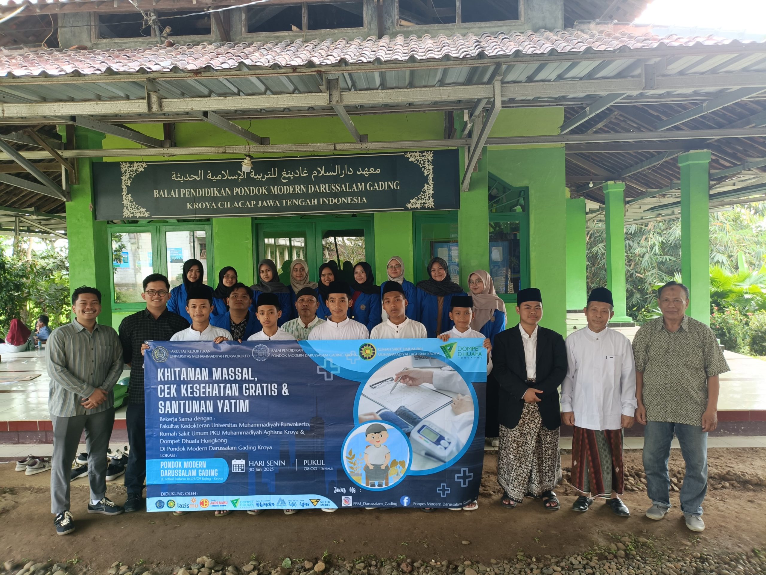 CILACAP – Komitmen terhadap pengabdian masyarakat kembali diwujudkan oleh Fakultas Kedokteran Universitas Muhammadiyah Purwokerto (FK UMP) dan Rumah Sakit Aghisna Medika Kroya. Kedua institusi ini bersinergi menyelenggarakan kegiatan sosial berupa khitanan massal dan pemeriksaan kesehatan gratis di Pondok Pesantren Modern Darussalam Gading, Kroya, Cilacap.