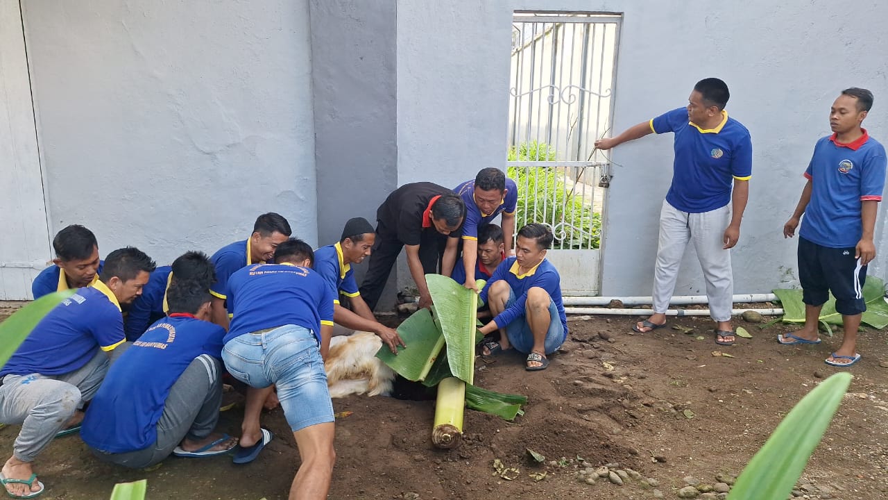 Usai sholat, gema takbir masih terdengar ketika proses penyembelihan hewan kurban dimulai. Empat ekor kambing — hasil sumbangan para pegawai dan mitra Rutan — dikurbankan dengan tetap menjunjung tinggi syariat Islam. Proses ini diawasi langsung oleh panitia kurban dan berlangsung dengan tertib.