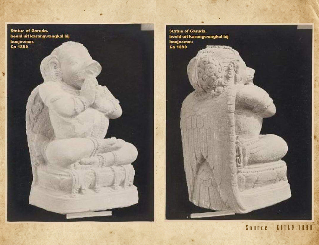 Dilihat dari posisinya yang sedang melakukan sikap sembah, para ahli purbakala meyakini bahwa patung Garuda ini awalnya tidak berdiri sendiri, melainkan ditempatkan berhadapan dengan sebuah arca Wisnu berukuran besar.