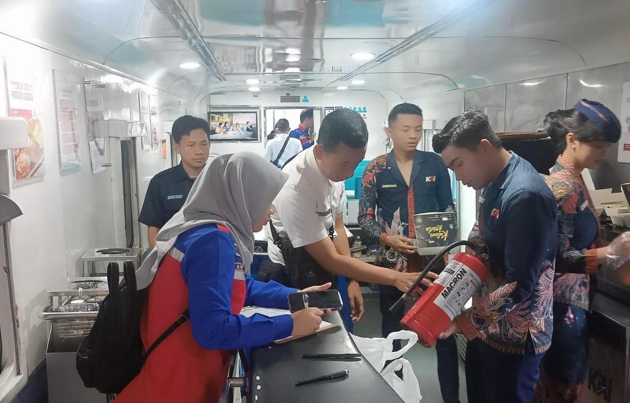 “Objek pemeriksaan di stasiun meliputi informasi dan fasilitas keselamatan seperti alat pemadam api ringan (APAR), petunjuk jalur evakuasi, titik kumpul, dan nomor darurat. Selain itu, informasi dan fasilitas kesehatan seperti pertolongan pertama pada kecelakaan (P3K), kursi roda, tandu, dan lampu penerangan,” imbuh Feni.