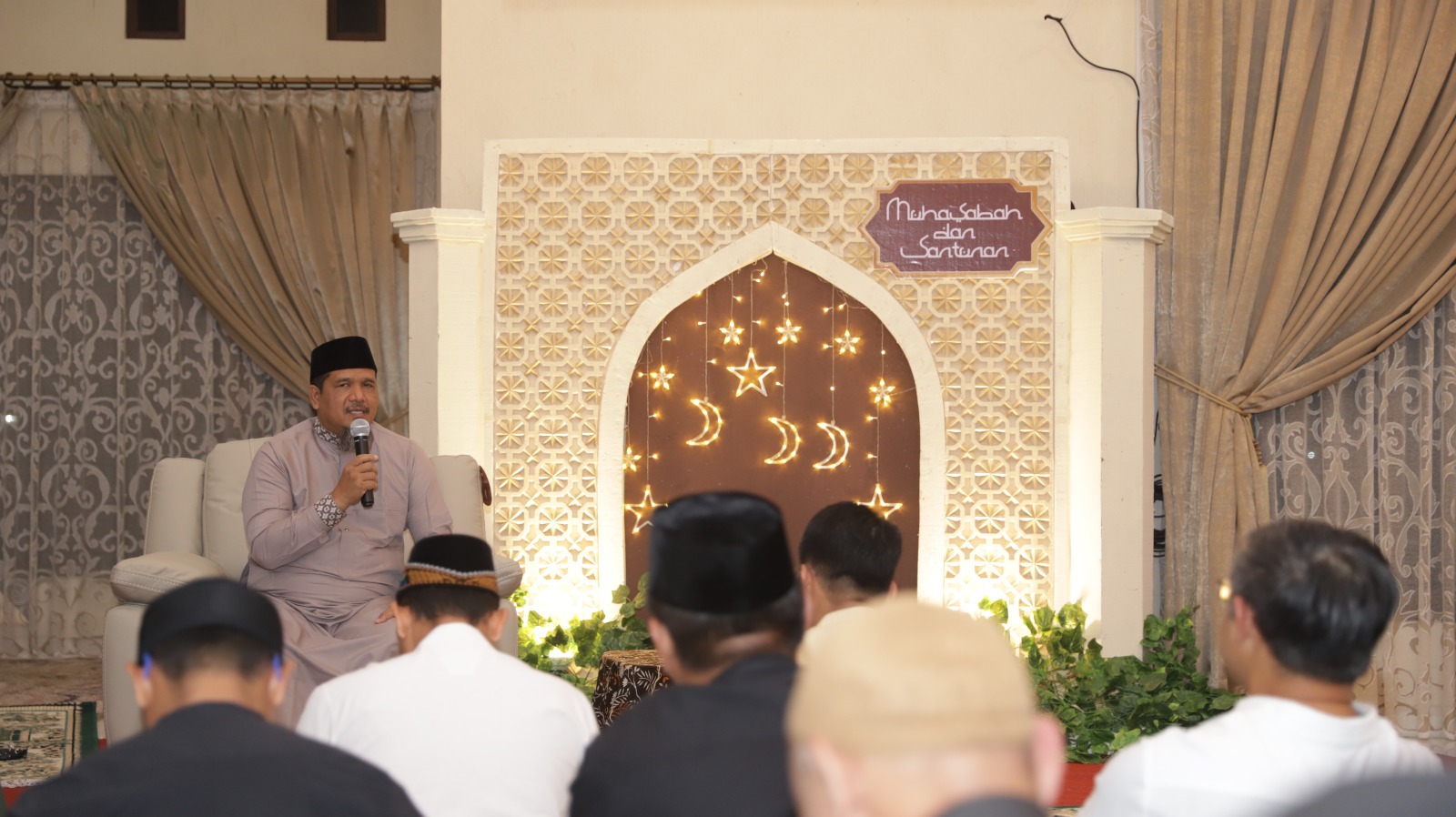 Sesi muhasabah dipandu oleh Ustaz Ahmad Askan, yang dalam tausiyahnya mengingatkan pentingnya membersihkan hati dan memperbaiki diri, dengan menjauhi sifat zalim, baik terhadap diri sendiri maupun orang lain, serta meninggalkan sifat jahil yang dapat mengaburkan nurani dalam menjalani amanah kehidupan dan pekerjaan.
