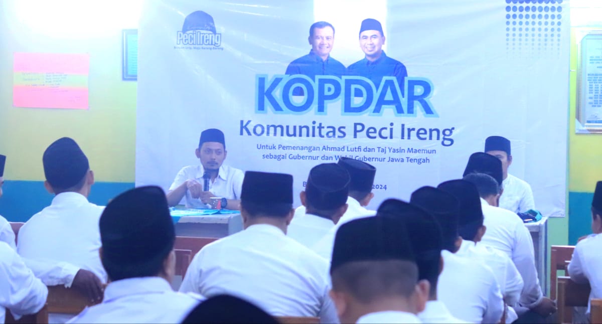 Purwokerto, Ratusan pemuda dan santri dari wilayah Banyumas yang tergabung dalam komunitas Peci Ireng melaksanakan Deklarasi Dukungan dan Pemenangan untuk Pasangan Calon Gubernur dan Calon Wakil Gubernur Jawa Tengah Ahmad Lutfi dan Taj Yasin di Aula Pondok Pesantren Nurul Iman Pasir Wetan Kecamatan Karanglewas pada Minggu 13 Oktober 2024.