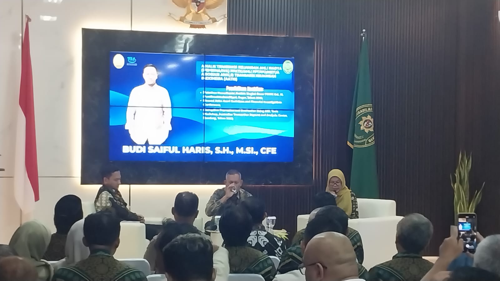Selain KPK, hadir pula narasumber kedua dari PPATK, yakni Budi Saiful Hadi yang saat ini menjabat sebagai Analis Transaksi Keuangan Ahli Madya sekaligus Ketua Tim Kerja Sama Dalam Negeri.
