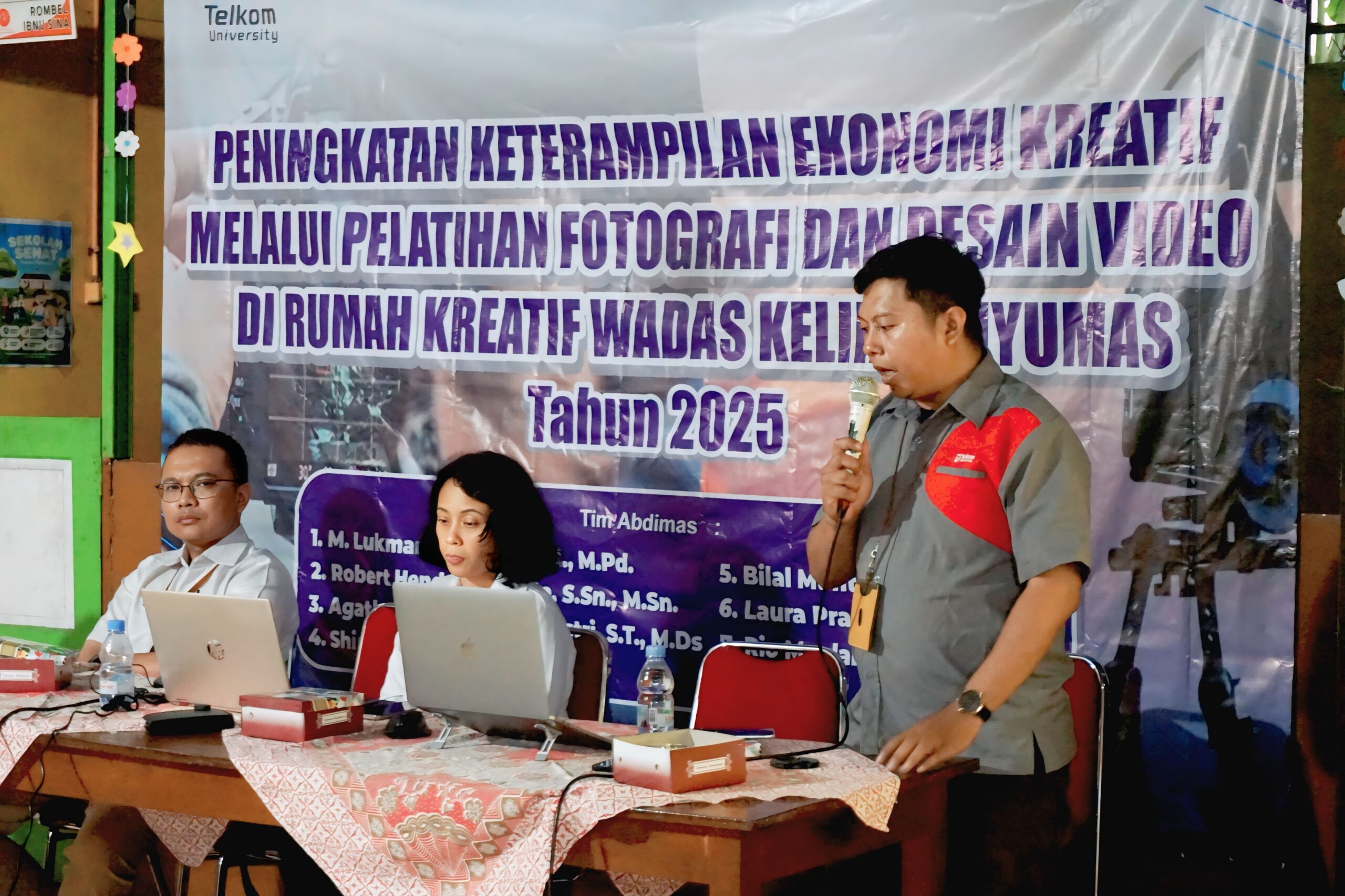 Banyumas, suarabanyumas.co.id – Rumah Kreatif Wadas Kelir, Kabupaten Banyumas, menjadi lokasi pelaksanaan kegiatan pengabdian kepada masyarakat yang diselenggarakan oleh tim dosen Telkom University Purwokerto. Kegiatan ini mengangkat tema peningkatan keterampilan ekonomi kreatif melalui pelatihan fotografi dan desain video bagi pemuda dan pegiat kreatif lokal.
