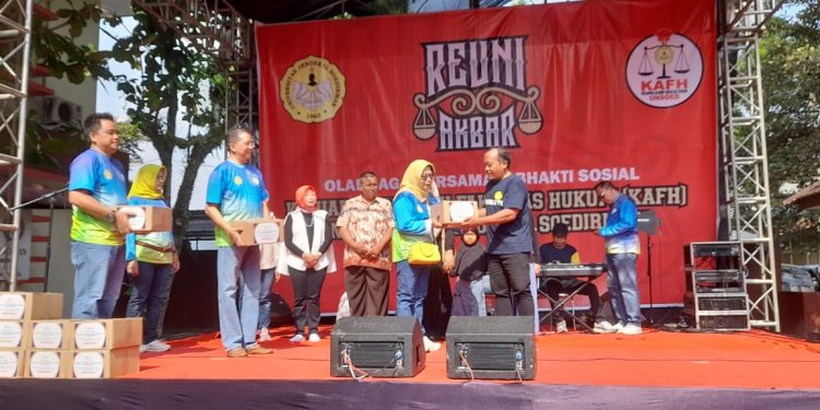 PURWOKERTO -Rangkaian Reuni Akbar Keluarga Alumni Fakultas Hukum Universitas Jenderal Soedirman (KAFH Unsoed) Purwokerto, Jawa Tengah, yang berlangsung pada Sabtu hingga Minggu (27-28-Sept-2025) ditutup dengan kegiatan jalan sehat dan Bakti Sosial atau Baksos.