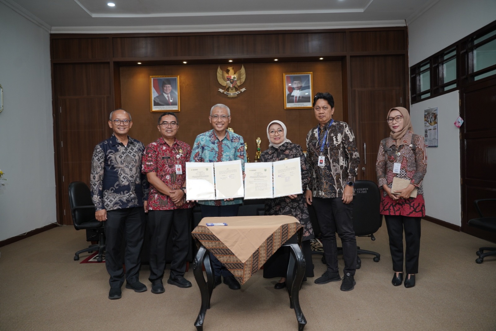 Direktur Manufacturing PT Solusi Bangun Indonesia Tbk, Soni Asrul Sani dan Bupati Kebumen, Lilis Nuryani, menandatangani nota kesepahaman bersama pemanfaatan RDF, disaksikan oleh Direktur Keuangan dan Manajemen Risiko PT Solusi Bangun Indonesia Tbk (paling kiri), Ony Suprihartono dan jajaran Pemkab Kebumen.