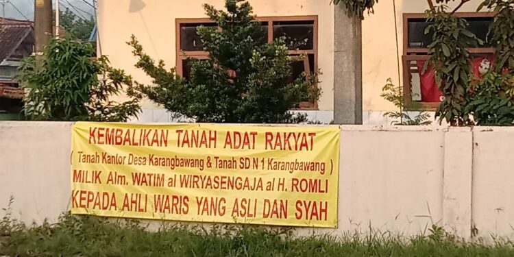 BANYUMAS – Polemik kepemilikan lahan yang melibatkan Kantor Desa Karangbawang dan SD Negeri 1 Karangbawang, Kecamatan Ajibarang, Kabupaten Banyumas kembali mengemuka. Ahli waris almarhum Watim Al Wiryasengaja atau H. Romli, pada Senin (27/10/2025), memasang spanduk tuntutan hak kepemilikan tanah di lokasi tersebut. Namun tak lama berselang, spanduk itu langsung dicopot oleh pihak komite sekolah.